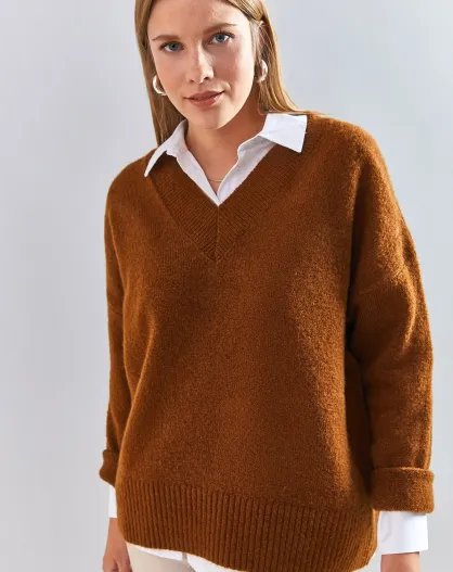 Poncho ceinturé en laine mélangée avec col en peluche brun amer