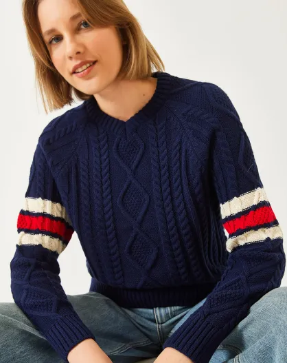 Pull en maille à col V bleu marine