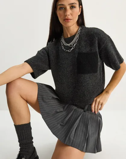 Pull en maille à manches courtes color block avec poches anthracite