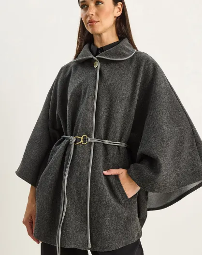 Cape à poches ceinturée en similicuir anthracite