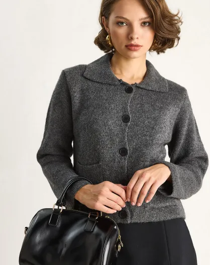 Gilet à poches/vêtement d'extérieur en maille confortable anthracite