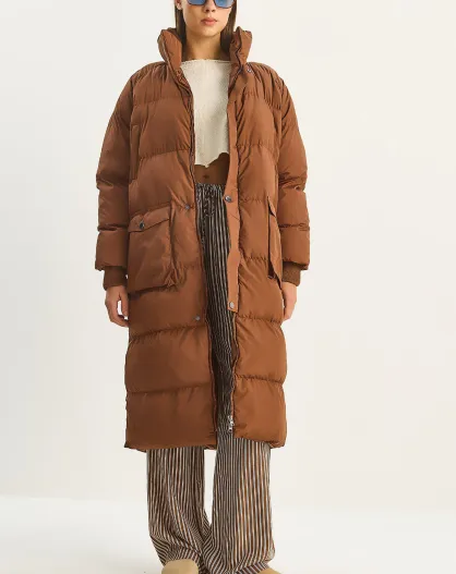 Manteau en daim avec poches en fausse fourrure et col châle brune