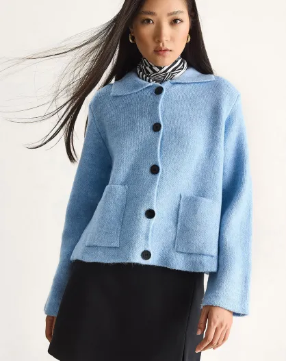 Gilet à poches/vêtement d'extérieur en maille confortable bleu bébé