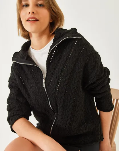 Gilet en maille avec fermeture éclair à effet duveteux noir