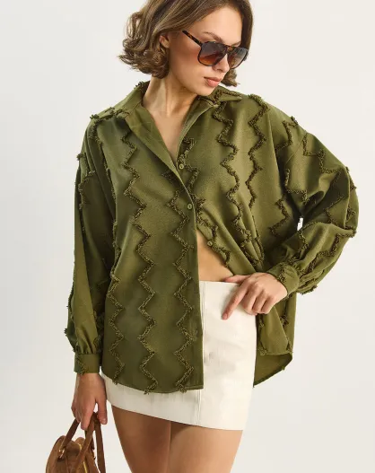 Chemise à franges en zigzag oversize kaki