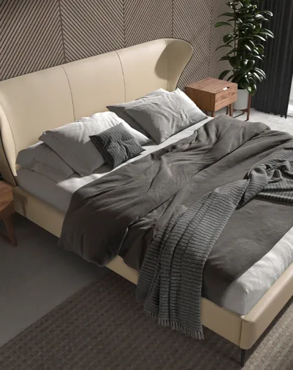 Lit double avec tête de lit originale crème/noir - 89x220x217 cm