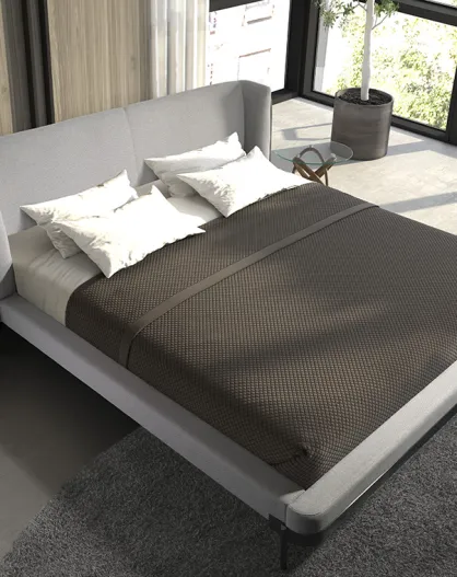 Lit double avec tête de lit originale gris/acier - 107x218x229 cm