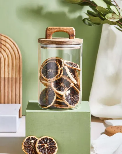 Bocal avec couvercle et cuillère transparent - 18x8 cm
