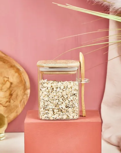 Bocal à couvercle et cuillère transparent - 12x8 cm