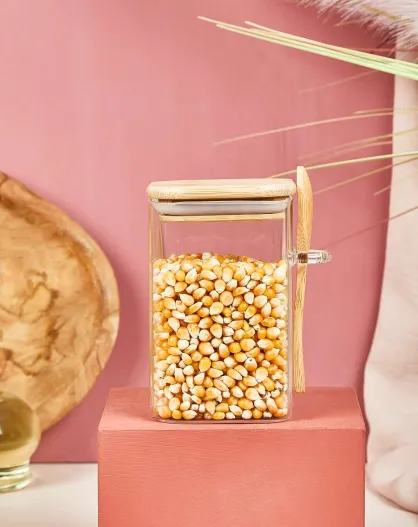 Bocal avec couvercle et cuillère transparent - 18x8 cm