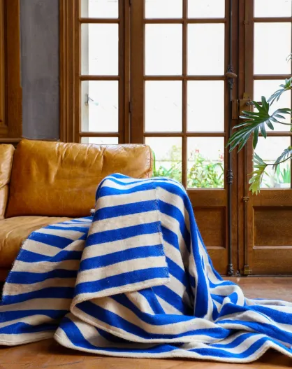 Plaid berbère rayures bleu majorelle-300x200cm