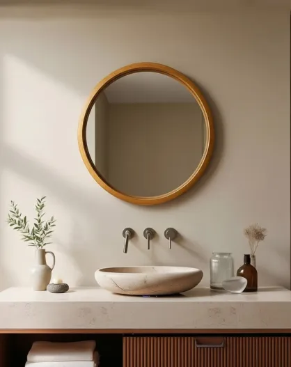 Liora - Miroir rond en bois massif de manguier - 76x5 cm