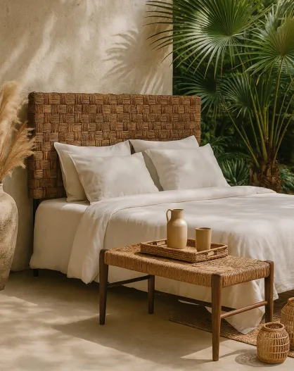 Nest - Tête de lit tressée en jacinthe d'eau et acajou - 160x10x100 cm