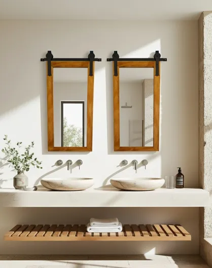 Zara - Miroir mural rectangulaire en bois massif et métal - 40x3X120 cm