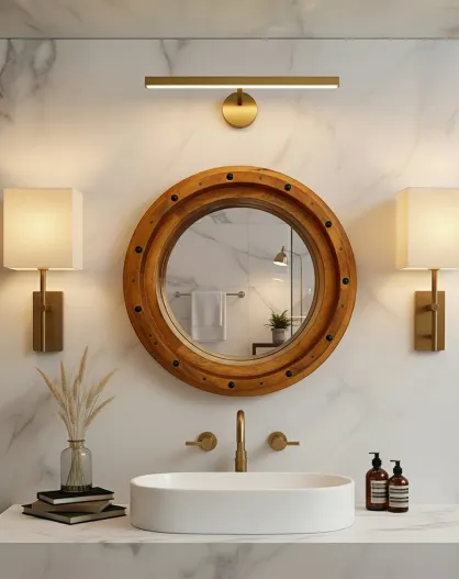 Boïa - Miroir hublot en bois massif de manguier - 45x5 cm