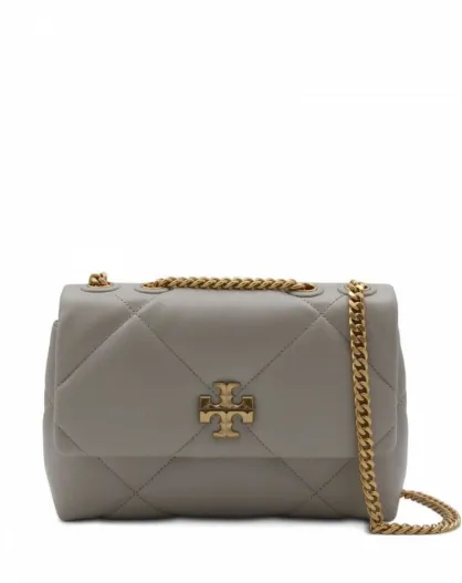 Sac bandoulière en Cuir matelassé Kira gris pierre clair - 15.5x22.5x7.5 cm