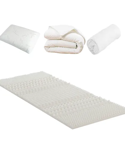 Pack Douce Nuit : Surmatelas + Protège-matelas + Couette + Oreillers - 180x200 cm