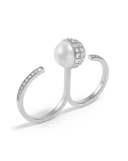 Bague Or Blanc, Diamants 0.06 ct et Perle d'Eau Douce blanche