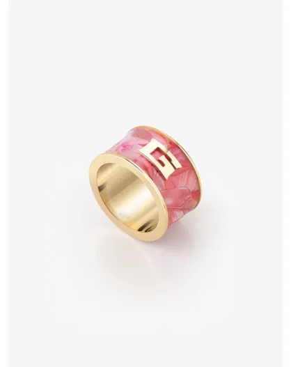 Bague ajustable 2 Rangs Acier & Perles d'Eau Douce rondes roses