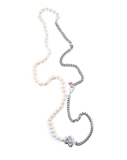 Collier Chaîne avec Perles argenté/blanc