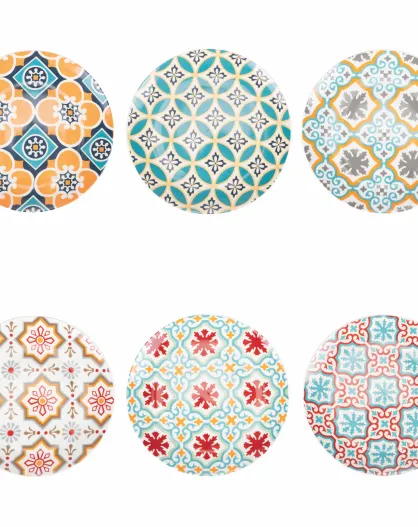 6 Assiettes dessert en Céramique multicolores - D.19 cm
