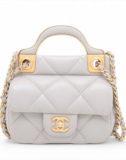 Porte -cartes à rabat avec bandoulière chaîne Gris perle - 9.5x11x3 cm - Très bon état