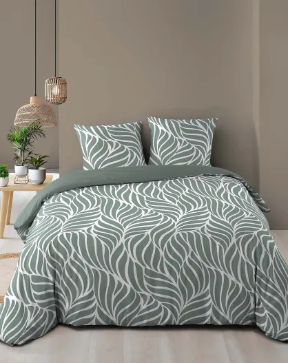 Parure housse de couette imprimée en Coton Morgane sauge