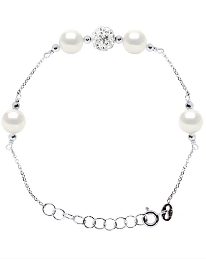 Bracelet en argent & perles de culture d'eau douce rondes blanc naturel