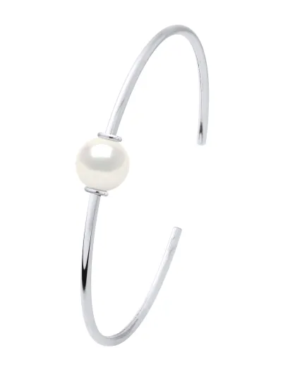 Bracelet jonc Prestige Toi & Moi en argent & perle de culture d'eau douce blanc naturel