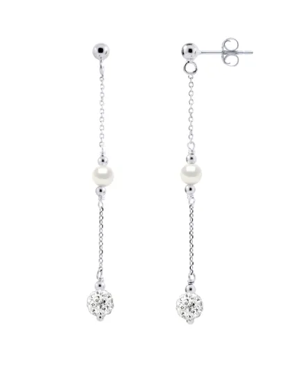 Boucles d'oreilles en argent rhodié & perles de culture d'eau douce rondes blanc naturel