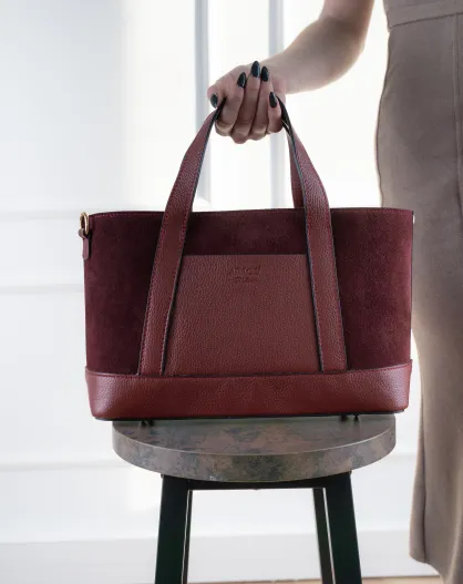 Sac à main en Velours de Cuir Belly Bordeaux - 35x21x12 cm