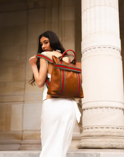 Sac à dos en Cuir Gao Dollaro Camel - 37,5x9x37 cm