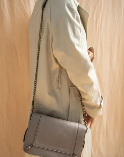 Sac bandoulière en Cuir Seren gris clair - 23,5x10x16 cm
