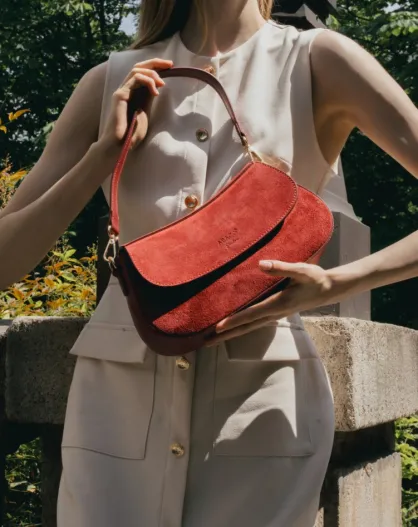 Sac porté épaule en Velours de Cuir Cyra Bordeaux - 27x14x6 cm