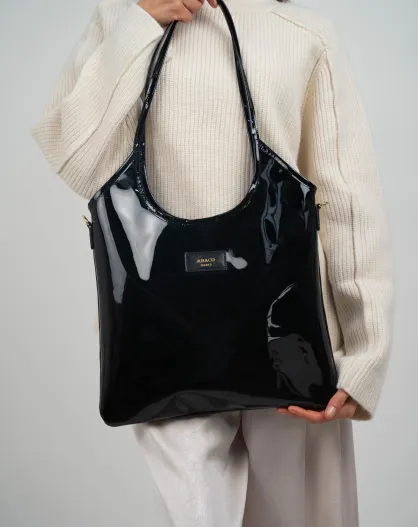 Sac cabas en Cuir Yana noir - 37x25x35 cm