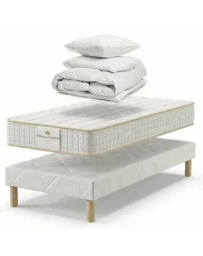 Pack Matelas Magal 25 cm + Sommier 80x200 cm + Oreiller 60x40 cm + Couette 140x200 cm - 80x200 cm