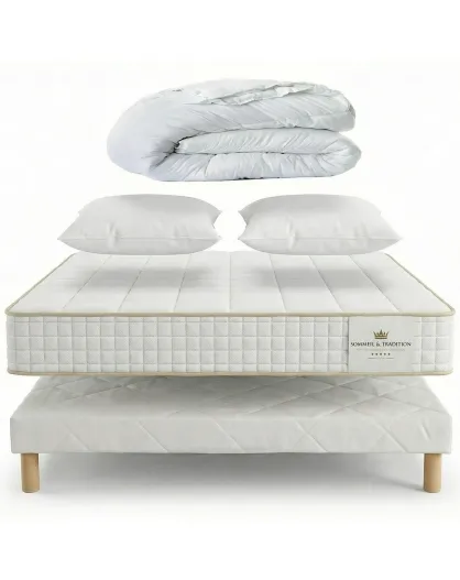 Pack Matelas Magal 25cm + Sommier 180x200 cm + 2 Oreillers 60x40 cm + Couette 140x200 cm - 180x200 cm