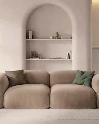 Canapé Modulaire Velours Lony 4 Places Beige Foncé - 250x100x68 cm