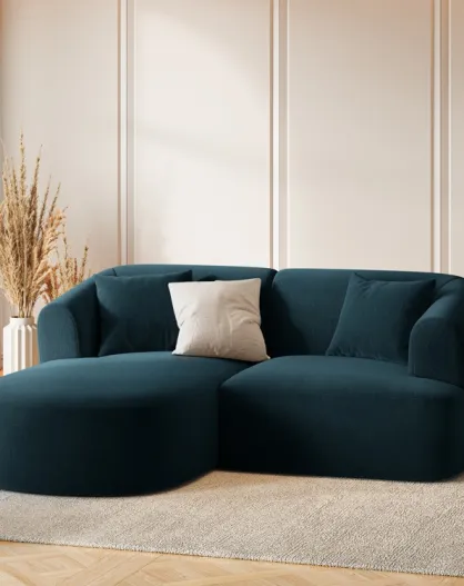 Canapé D'Angle Droit Velours Modulable Talia 3 Places Pétrole Profond - 180x156x70 cm