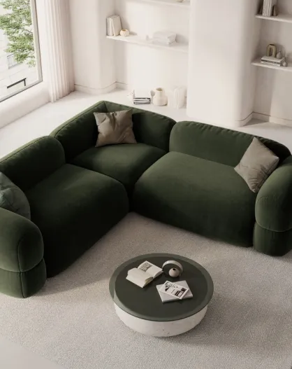 Canapé d'angle modulaire symétrique en velours Lony 5 Places Vert - 250x250x68 cm