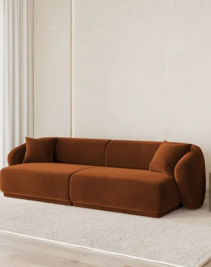 Canapé Velours Jane 4 Places Terracotta - 246x93x74 cm