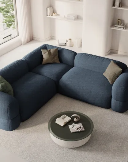 Canapé d'angle symétrique modulable Lony 5 Places Bleu Foncé - 250x250x68 cm