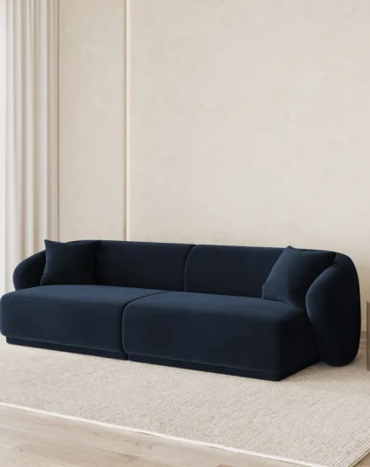 Canapé Velours Jane 4 Places Bleu Roi - 246x93x74 cm