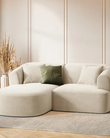 Canapé D'Angle Droit Velours Modulable Talia 3 Places Beige Clair - 180x156x70 cm