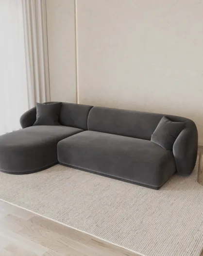 Canapé D'Angle Droit Velours Jane 4 Places Gris Foncé - 260x155x74 cm