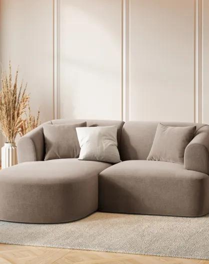 Canapé D'Angle Gauche Velours Modulable Talia 3 Places Beige Foncé - 180x156x70 cm