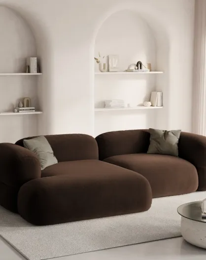 Canapé D'Angle Gauche Velours Modulable Lony 3 Places Chocolat - 250x147x68 cm
