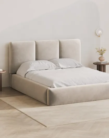 Lit Coffre en Velours avec tête de lit Bona Beige Clair - 220x180x100 cm