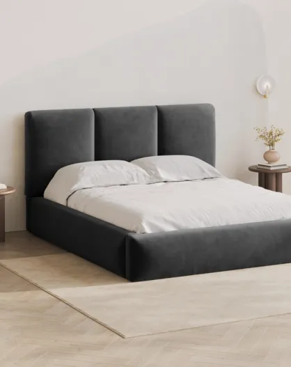 Lit Coffre en Velours avec tête de lit Bona Gris Foncé - 220x220x100 cm
