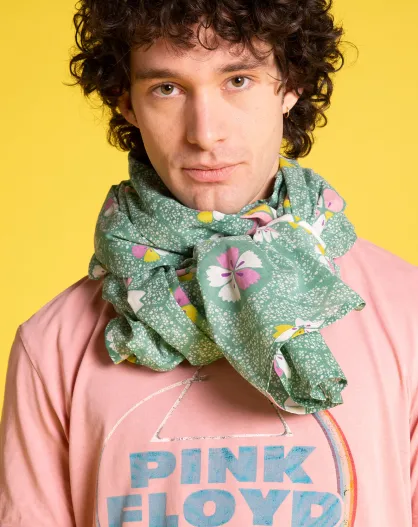 Étole mixte Voile Kobe imprimée verte - 180x110 cm